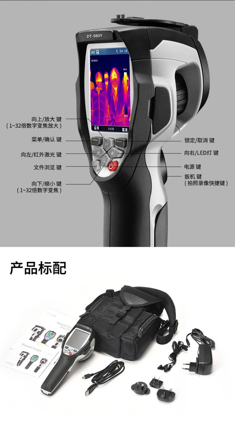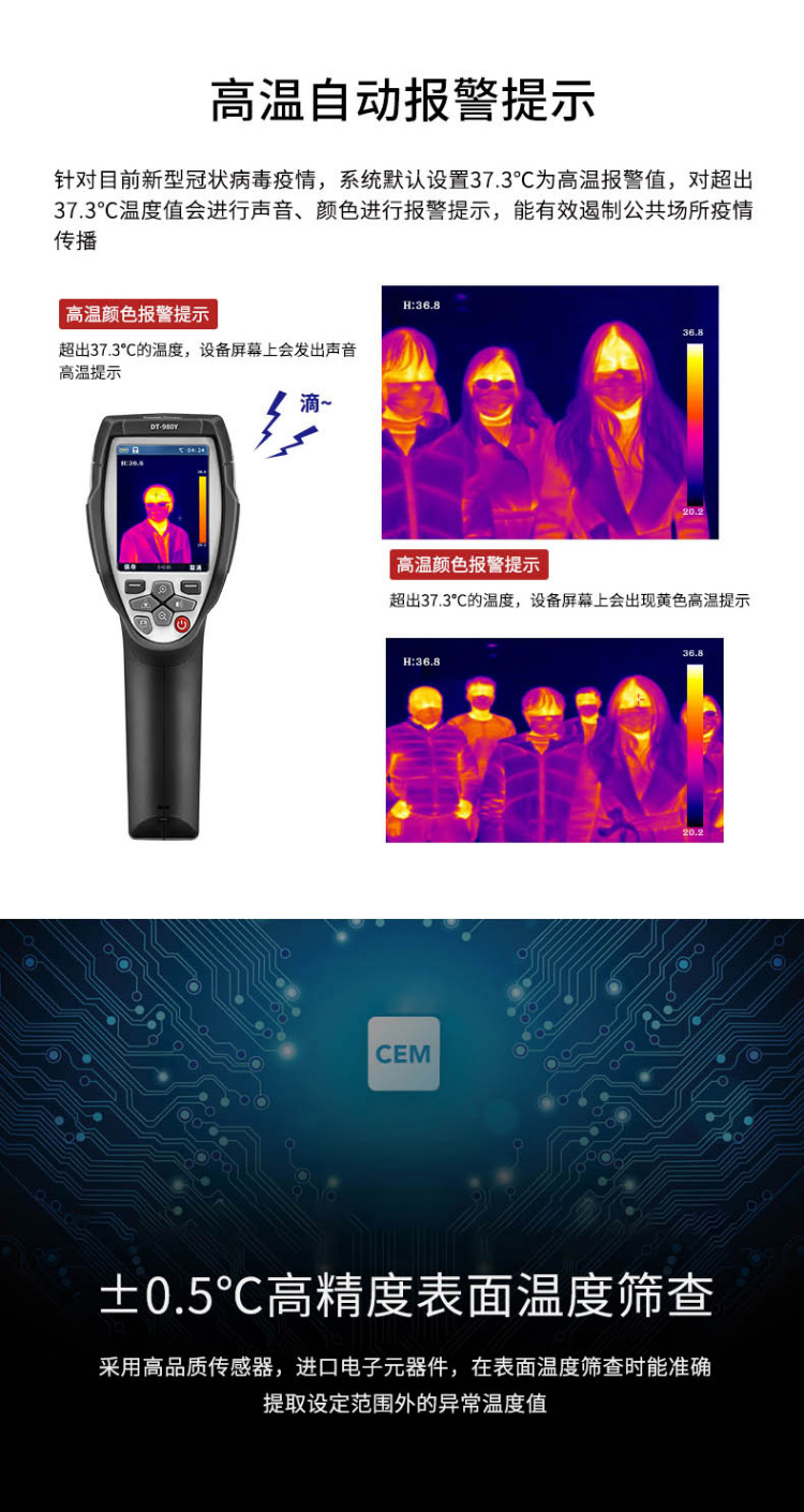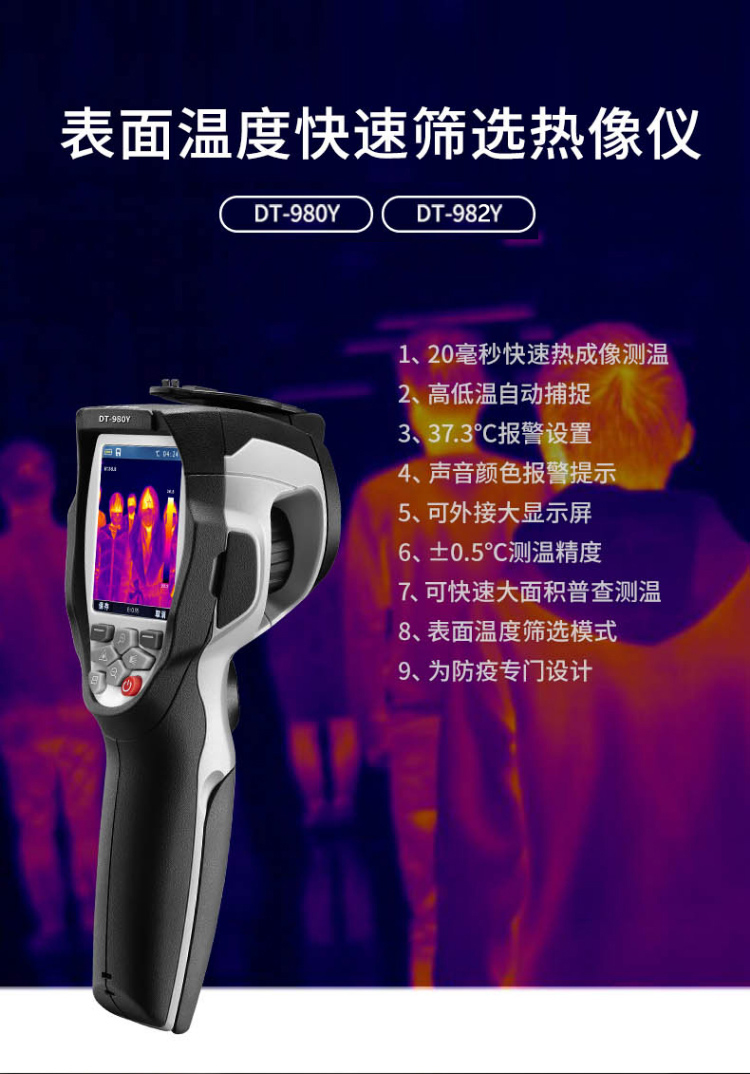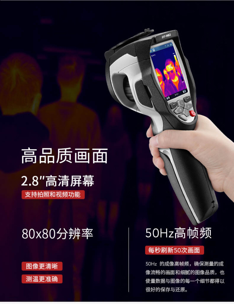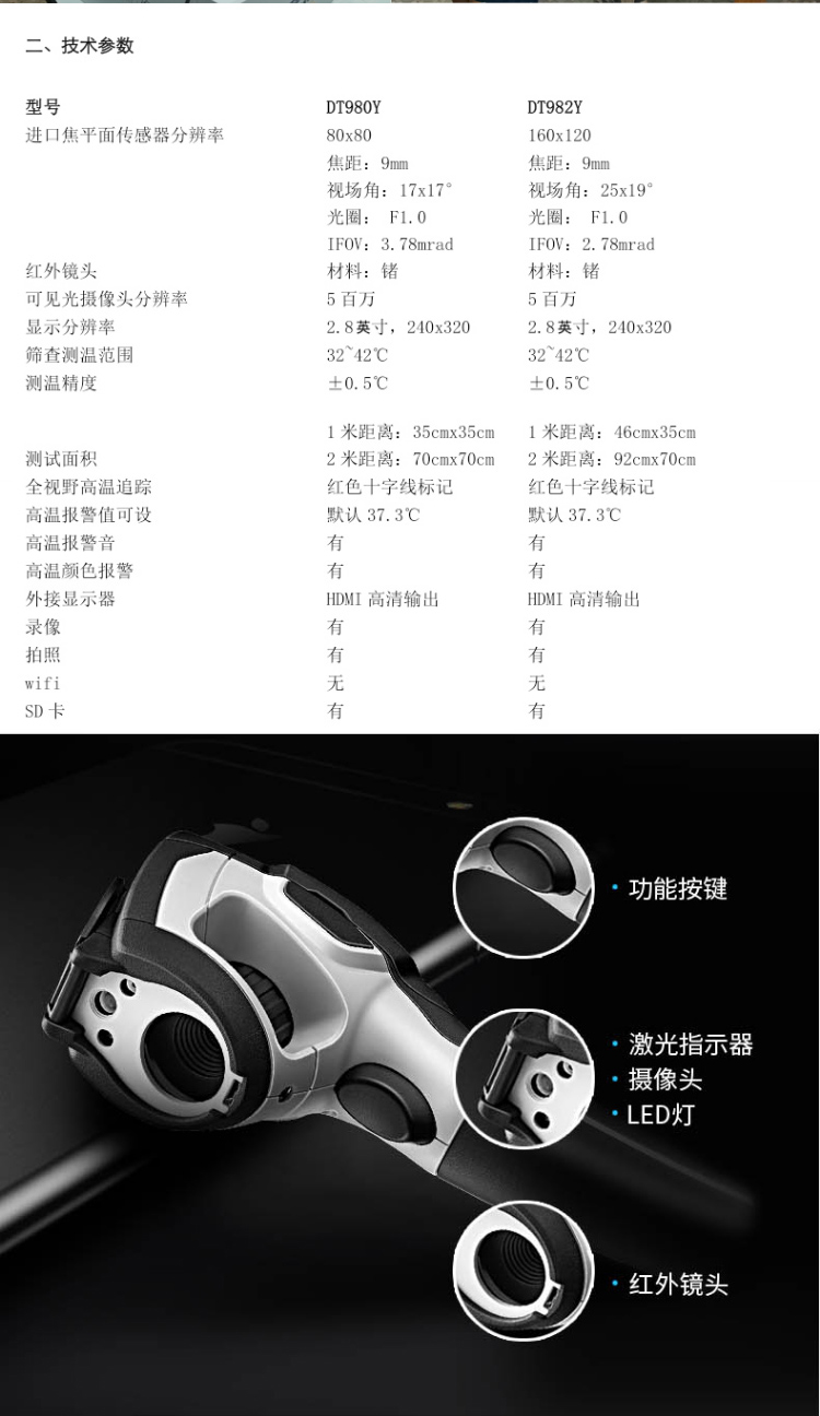 分辨率:160*120、圖像幀頻:50HZ、篩查測溫范圍:32-42℃、可外接HDMI大屏顯示