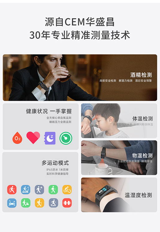 CEM路卡智能專(zhuān)業(yè)酒精檢測(cè)手表體溫檢測(cè)運(yùn)動(dòng)健康監(jiān)測(cè)物溫環(huán)境溫濕度M90X 時(shí)尚版本