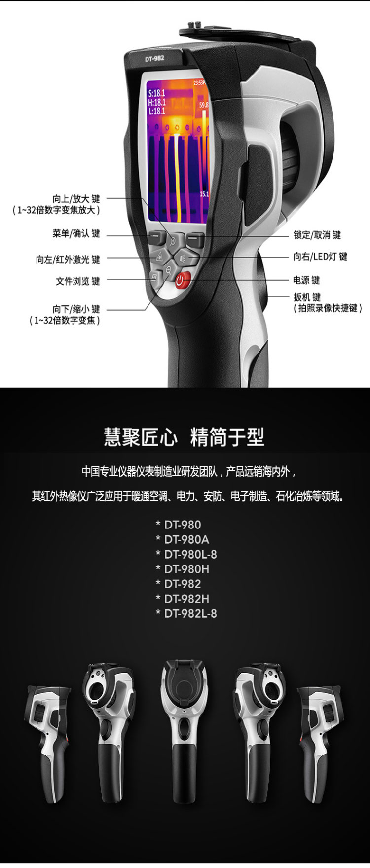 標(biāo)配鏡頭7.5mm,分辨率80×80,IFOV:3.77mard,視場(chǎng)角17×17°,熱靈敏度NETD<0.06℃,圖像幀頻50Hz,溫度范圍(-20-150、0-650),可見光分辨率500萬像素