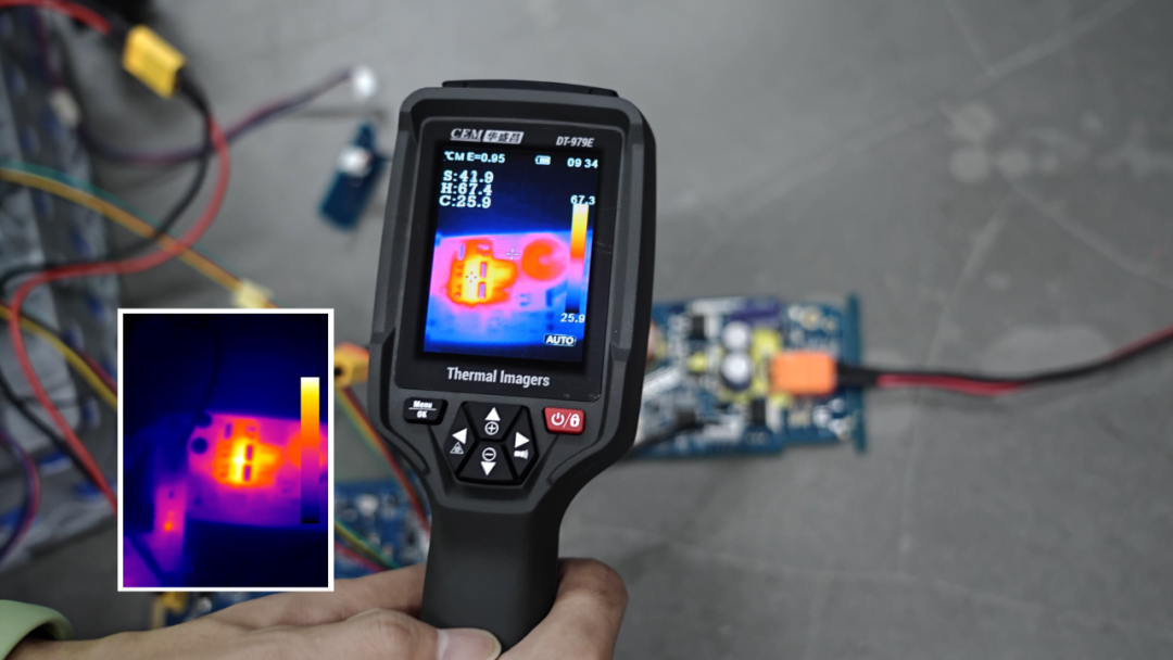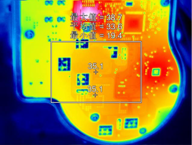 使用紅外熱像技術(shù)對PCB電路板進行發(fā)熱測試。下圖為PCB電路板的發(fā)熱情況測試,需要觀測PCB電路板表面的溫度分布情況,來確認(rèn)是否處于工作溫度內(nèi)。