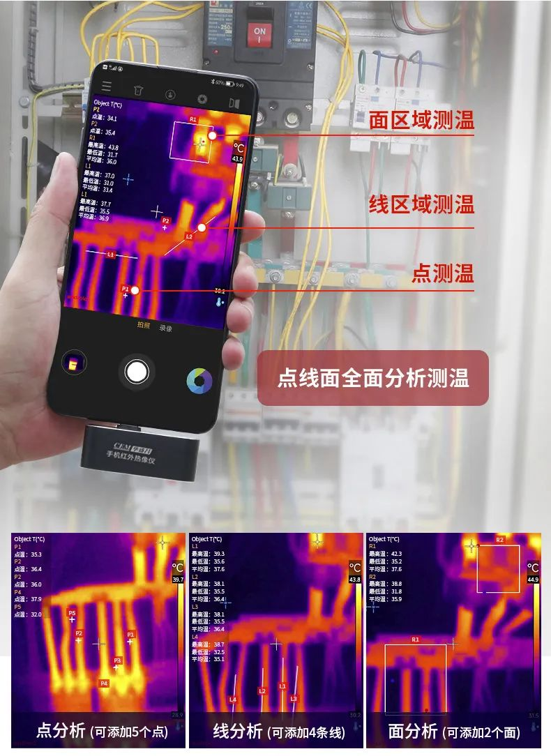 熱像儀的使用,顯著提高了各類工程效能。它能幫助工程師“看見"熱,比經(jīng)驗和直覺耗時更少,定位更準(zhǔn)確;非接觸測溫,不用擔(dān)心觸電風(fēng)險;不用布線,不用涂膠,也不用擔(dān)心高溫熔化熱電偶粘膠;"看”小物體的熱成為可能。