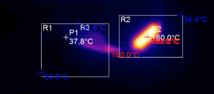 ?。?60°高溫保險熔斷瞬間熱像圖)