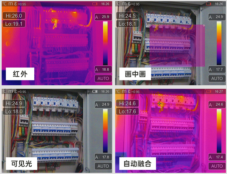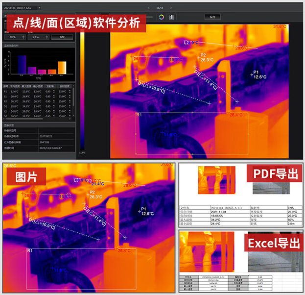 紅外圖像和可見光圖像的組合顯示,能更精準(zhǔn)地識別溫差,讓工程師可以更好觀察接觸點長期處于高溫狀態(tài)的情況,減少工作量。因為工程師可根據(jù)可見光圖片來判斷紅外圖片中熱點的未知,并自動生成報告,減少操作時間,提高工作效率。