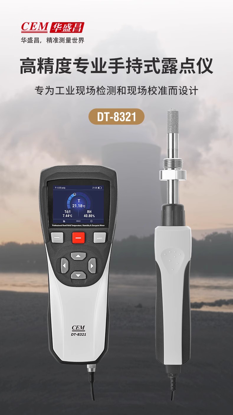 CEM DT-8321是CEM華盛昌新設計、研發(fā)和制造的一款高精度專業(yè)手持式露點儀,精度高范圍廣,能在較寬的測量范圍內(nèi)準確測量露點溫度,探頭可直接插入加壓過程中,并快速響應測試過程環(huán)境條件,為工業(yè)露點測量應用提供準確快速的測量。產(chǎn)品廣泛應用于實驗室、電力電氣、SF6氣體測量、精密制造、化工制藥等領域的大溫度、大壓力范圍內(nèi)的直接過程露點測量。