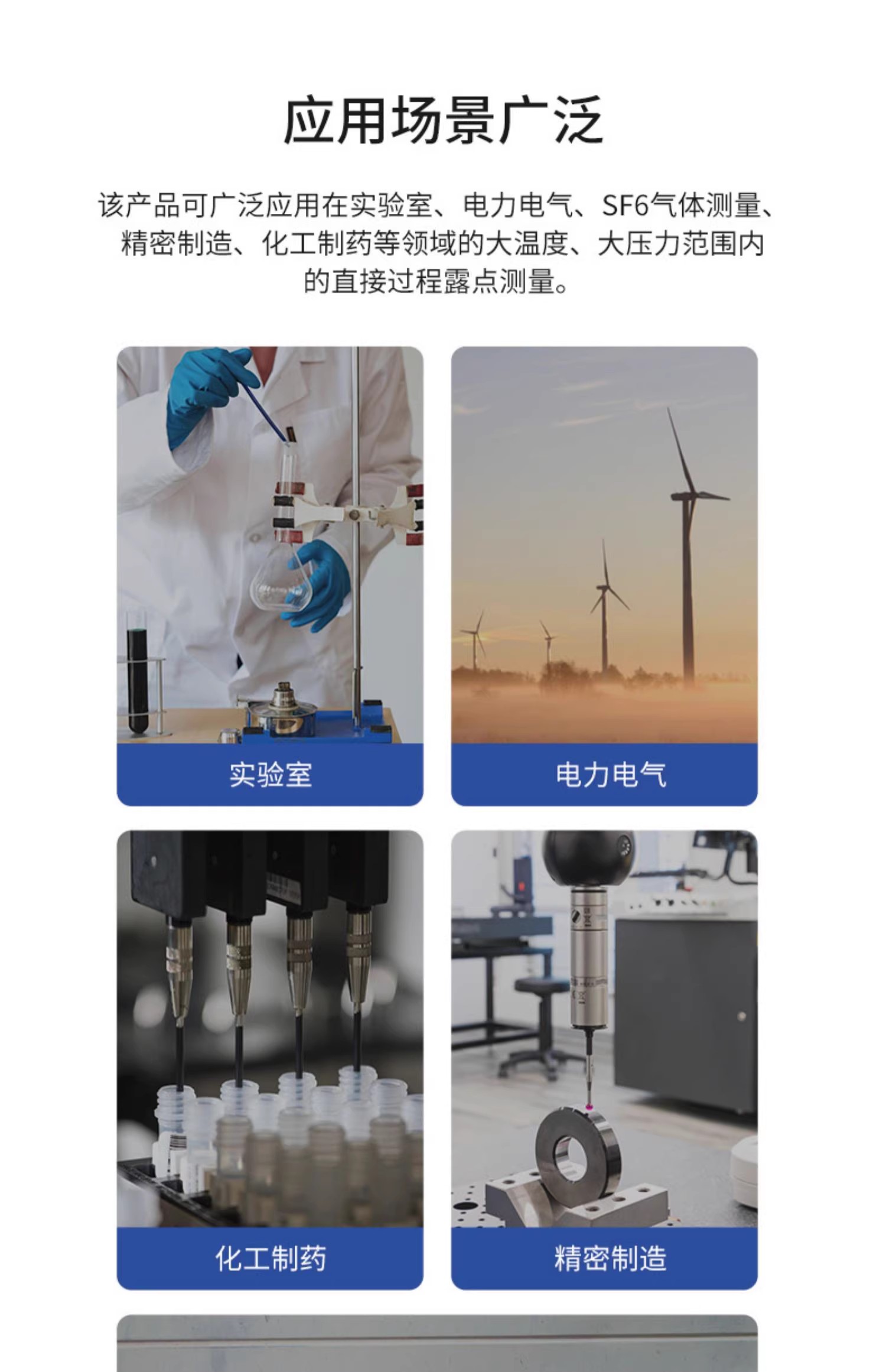 在制造、加工、儲存等工業(yè)領域中,可用于監(jiān)測空氣中的水分含量,保障生產(chǎn)過程的穩(wěn)定性和質(zhì)量。